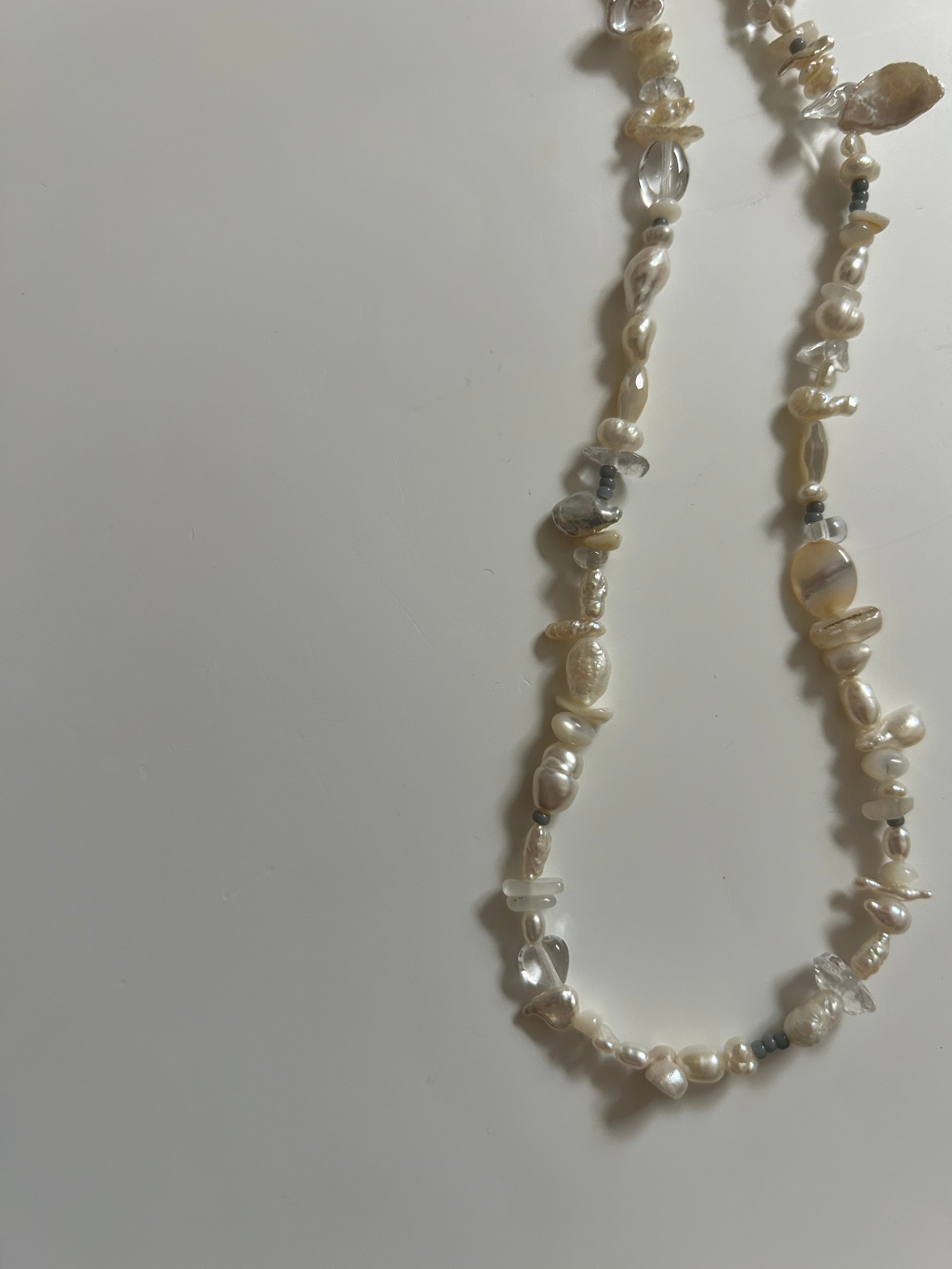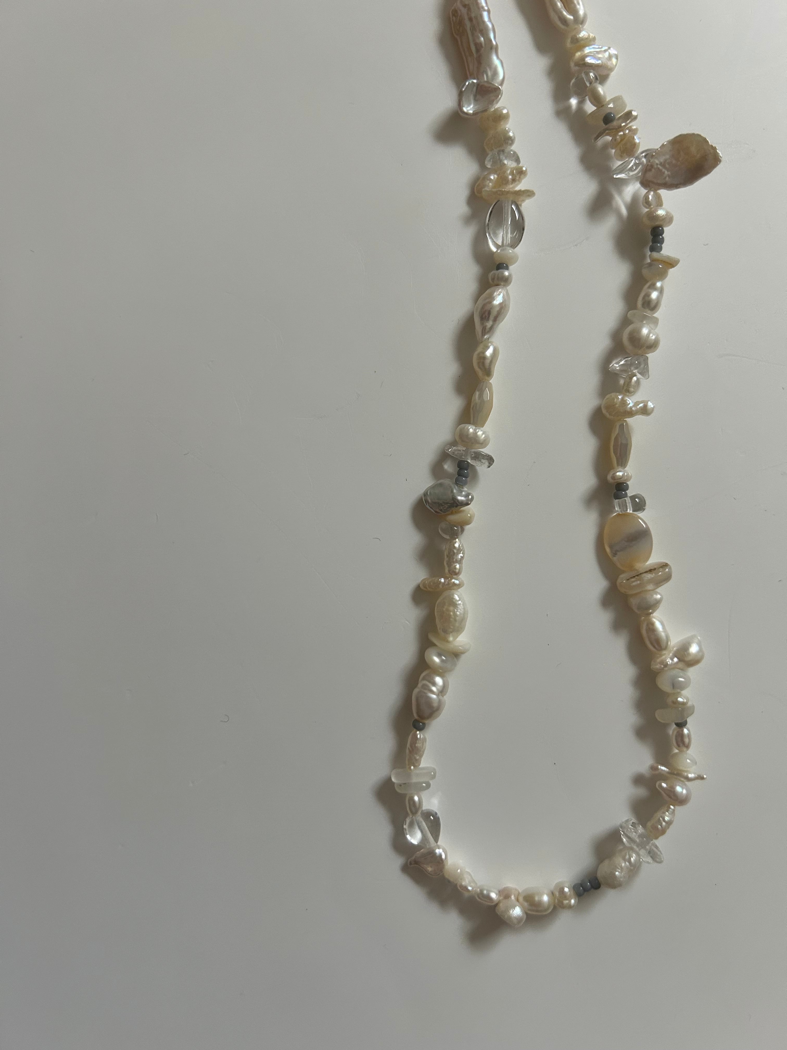 Pearl × gray beads necklace | manlylifes